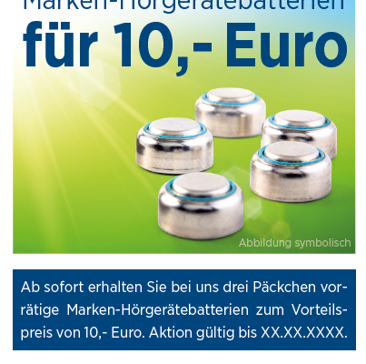 Deshalb möchten wir Sie zu einem Hörgeräte-Check in die Bachstraße 2 einladen. Beim Termin werden wir Ihre Hörtechnik auf Herz und Nieren prüfen. Wir werden Ihr Hörgerät professionell reinigen, gegebenenfalls den Schallschlauch oder das Ohrpassstück erneuern und die Geräte-Einstellung aktualisieren.Bitte versäumen Sie dieses Angebot nicht. Durch die Überprüfung werden wir sicherstellen, dass Ihnen Ihre Hörhilfe auch weiterhin die gewohnte Unterstützung bietet. Ihre Ohren haben auf jeden Fall einen exzellenten Service verdient. Und zudem ist unser Service für Sie absolut kostenfrei. Als Aktion bieten wir Ihnen drei Packungen Marken-HörBatterien zum Preis von 10,– € und bei zehn Packungen 10% Rabatt an!Wir würden uns freuen, wenn Sie sich in den kommenden Wochen zwecks Terminvereinbarung bei uns melden – unter der Telefon-Nummer (01577) 0 77 66 80 oder gerne auch direkt in unserem Fachgeschäft.
